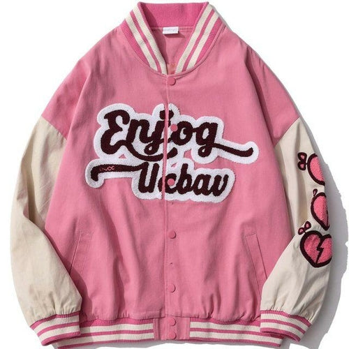 Unisex Baseball Jacket Colorful Heart Embroidery Patchwork