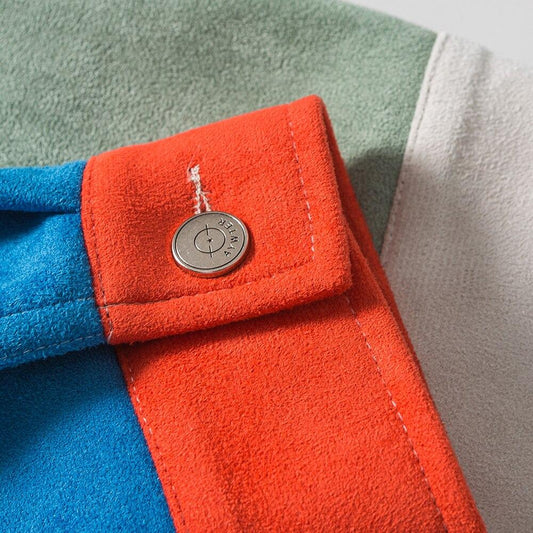 Jacket Men Colorful Patchwork Coat High Street College Style Outwear