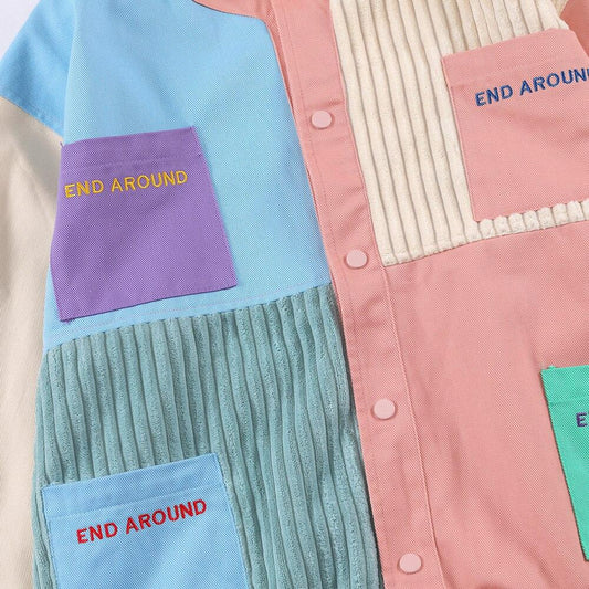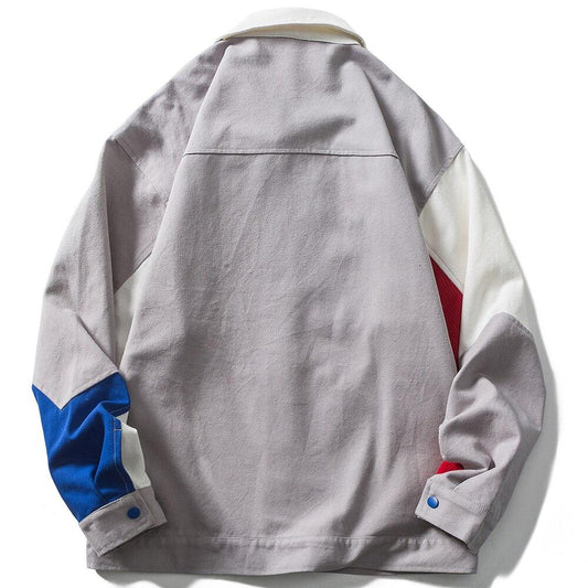 Jackets Retro Hit Color Patchwork Multi-Pocket Varsity Jacket Coat