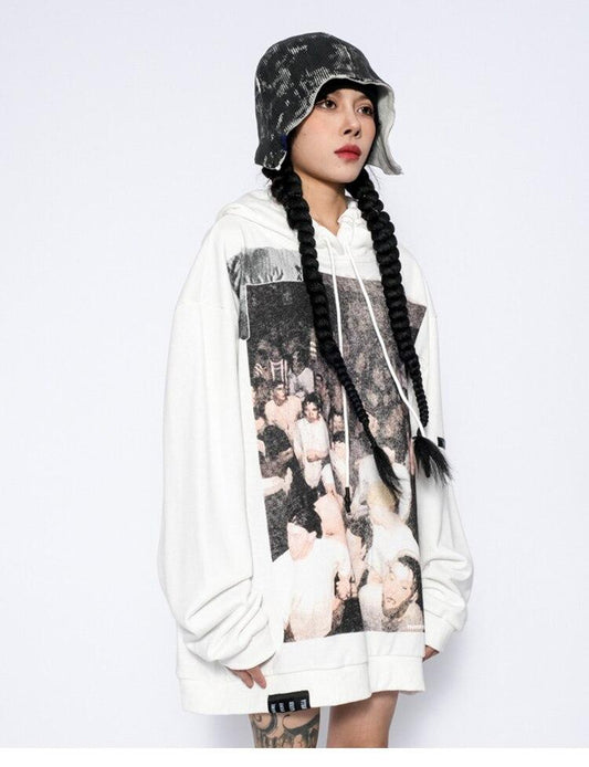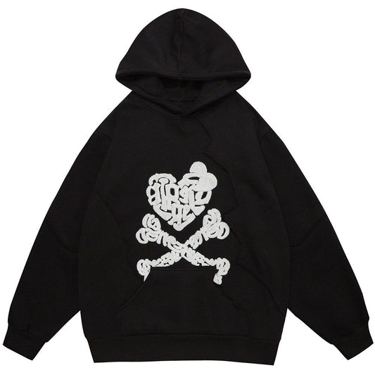 Hoodie Men Heart Bone Graffiti Fleece Warm Pullover Couple Oversize
