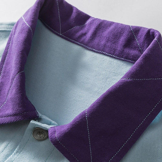 Denim Jacket Men Color Block Patchwork Embroidery Multi-Pocket Cargo