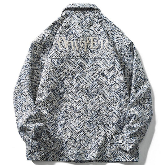 Jacket Men Harajuku Pattern Letter Patch Turn-down Collar Jackets Coat