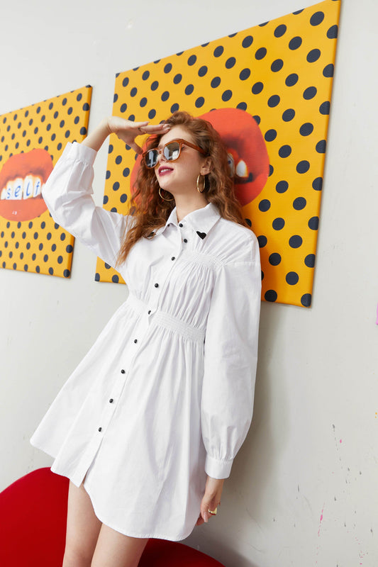 Solid Chic Button Casual Vintage Shirt Dresses Women,Autumn Korean