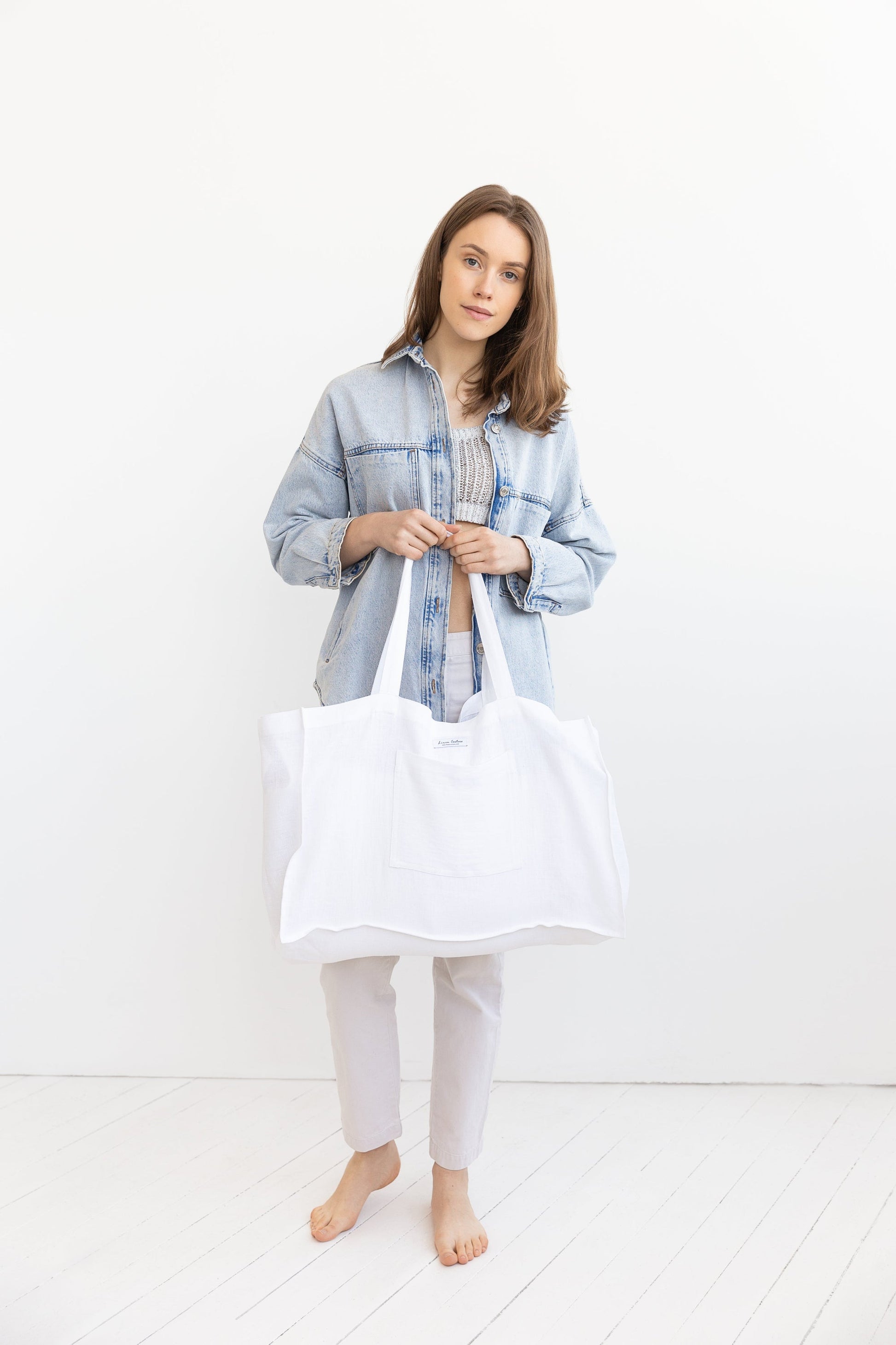 If you are looking for the perfect beach bag, you do not need to look further. A versatile linen bag, messenger style accessory which can be worn across the shoulder for a hands-free, practical approach. They are stone-washed and preshrunk, which made these bags soft to touch and easy to care for.