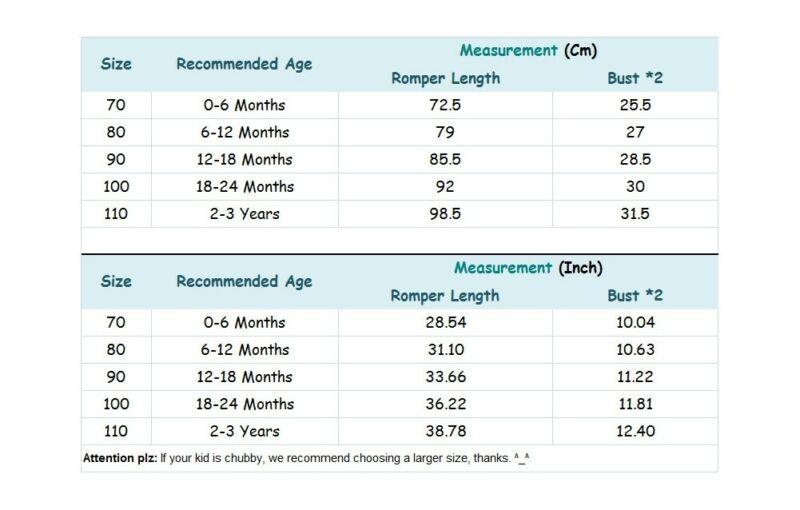 - 2-3 years child: L98.5 cm/38.8 in, Bust 31.5 cm/12.4 in