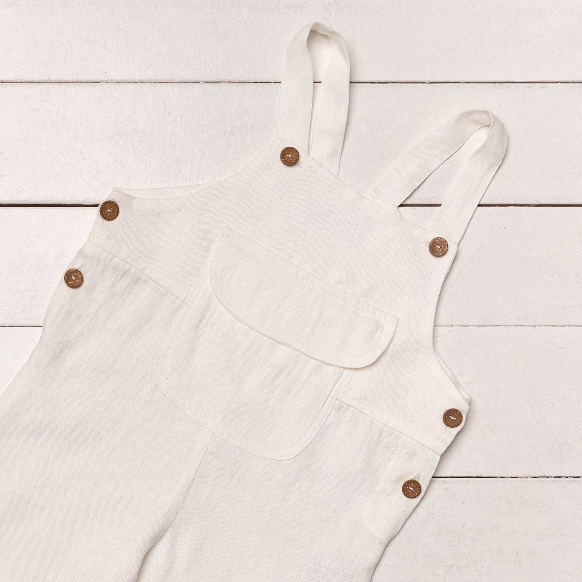 Introduce your little ones to the joy of linen with our beautiful jumpsuit. Made from 100% European linen, this jumpsuit features special coconut buttons on the straps and sides and comes in a variety of beautiful colors. Its cute and simple design is perfect for both girls and boys and can be worn alone or with a blouse underneath.