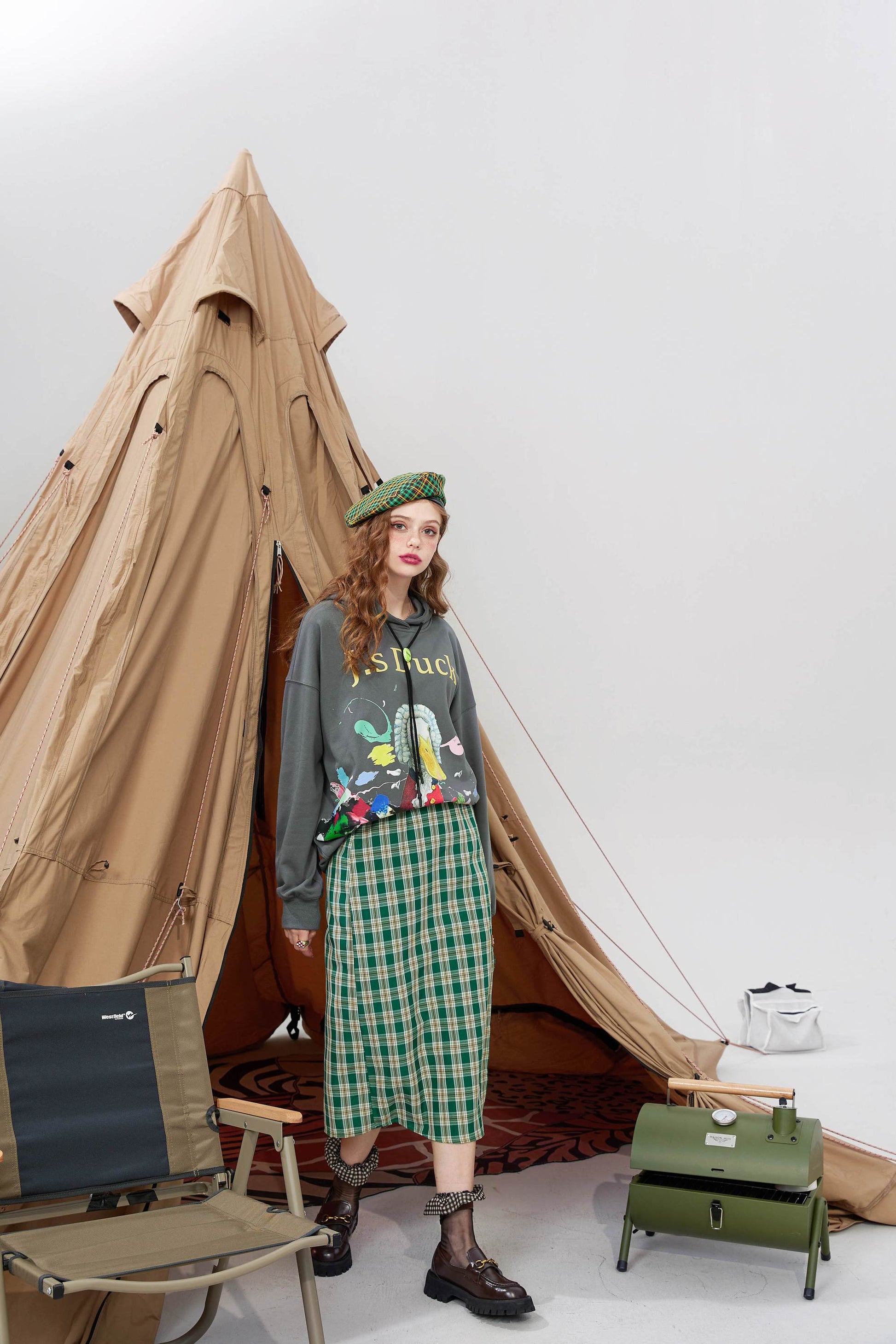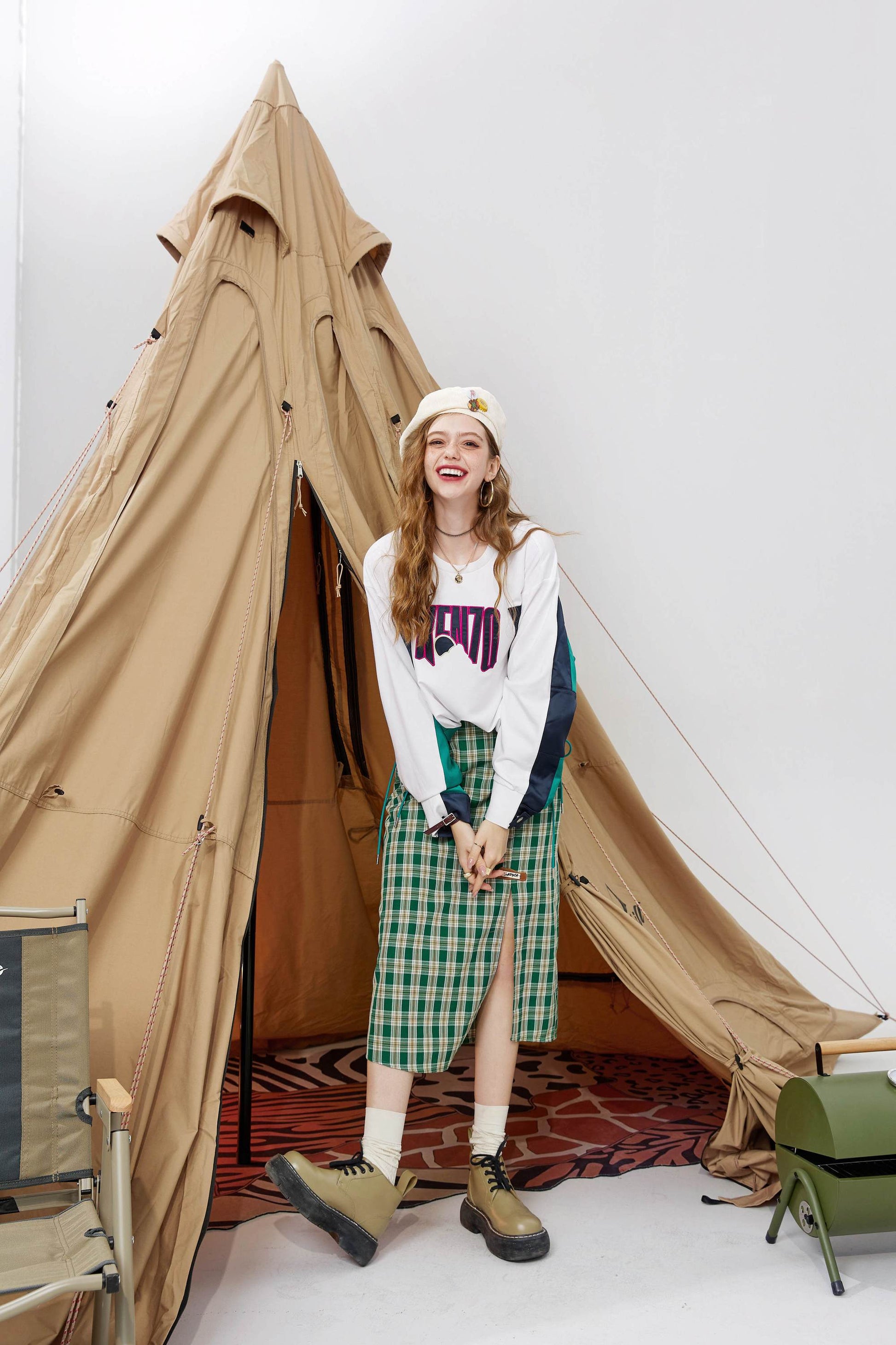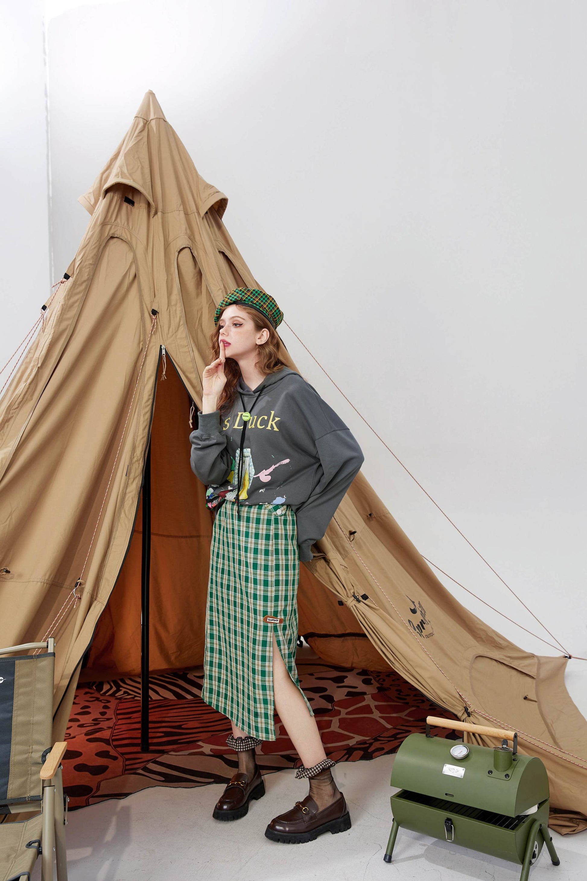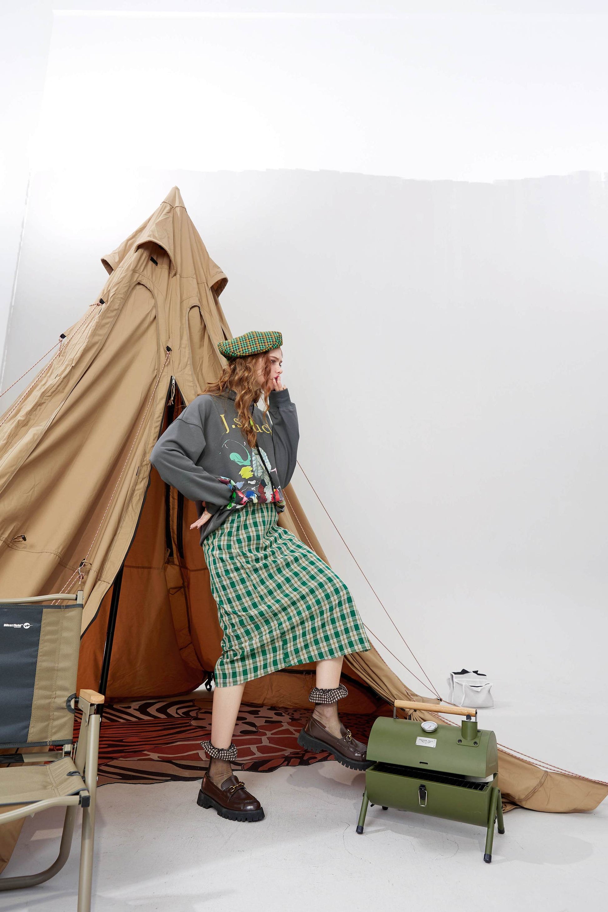 Plaid British High Waist Casual Women Midi Skirts,Autumn Chic Split