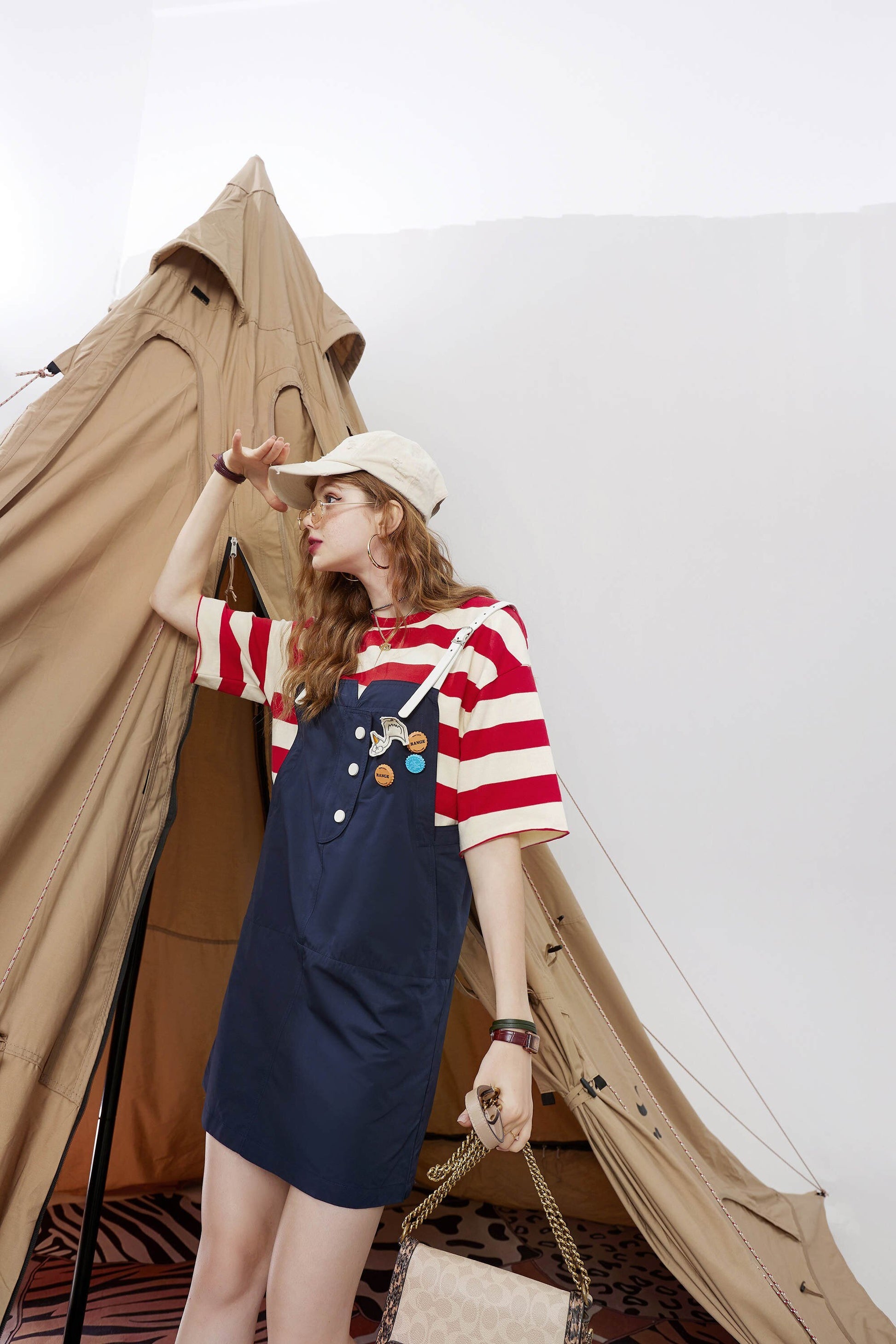 Striped Applique High Waist Casual Vintage Overall Dresses Women,Autumn Stylish Korean Ladies Daily Denim Dress
